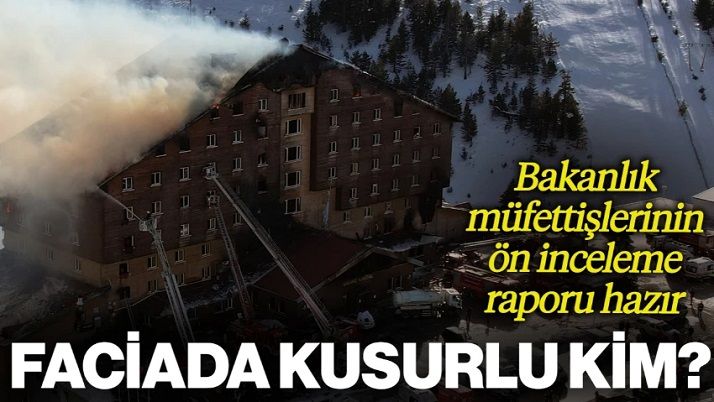 Bolu Kartalkaya Kayak Merkezi'ndeki Grand Kartal Otel'deki yangın faciasında 78 kişi hayatını kaybetmişti. Facia sonrası Kültür ve Turizm Bakanlığı ile Bolu Belediyesi arasında başlayan "Sorumluluk kimde?" tartışmasına yön verecek İçişleri Bakanlığı'na bağlı mülkiye müfettişleri ön inceleme raporu tamamlandı.