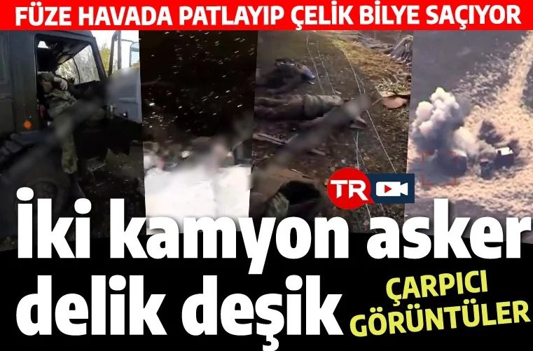 Son yayınlanan görüntünün Ukrayna doğusundaki Donetst cephesinde çekildiği sanılıyor. Kamyona binmiş Rus askerlerinin tamamını öldüren füzenin havada patladıktan sonra çelik parçacıklarla geniş bir alanda etkili olduğu sanılıyor.