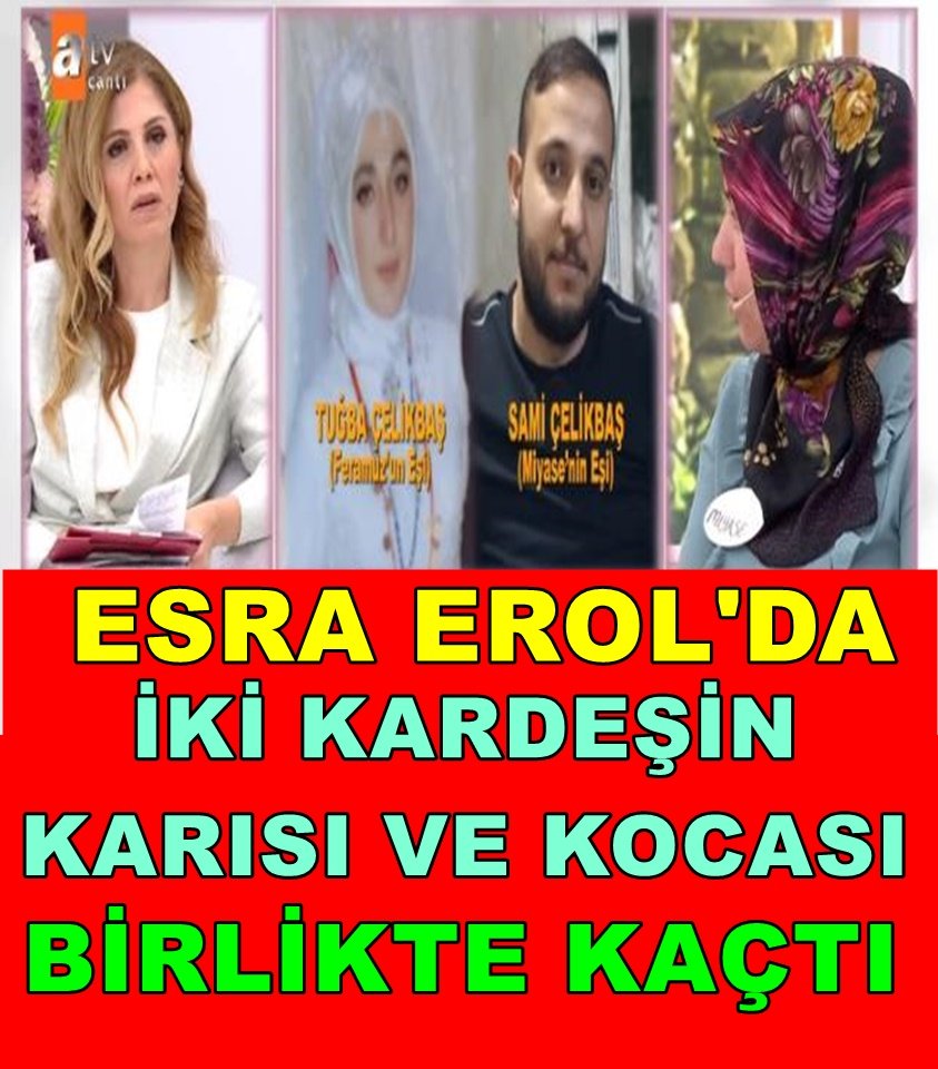 Esra Erol’da programına çıkan Feramus ve Miyase isimli kardeşler, eşlerinin 3 yıldır yasak aşk yaşadığını ve birlikte kaçtıklarını söyleyerek isyan etti. Bir çocuğunun eniştesinden olduğunu söyleyen Feramus DNA testi istediğini belirtirken kardeşler, boşanmak istediklerini ve eşleriyle yüzleşmek için yardım istedi.