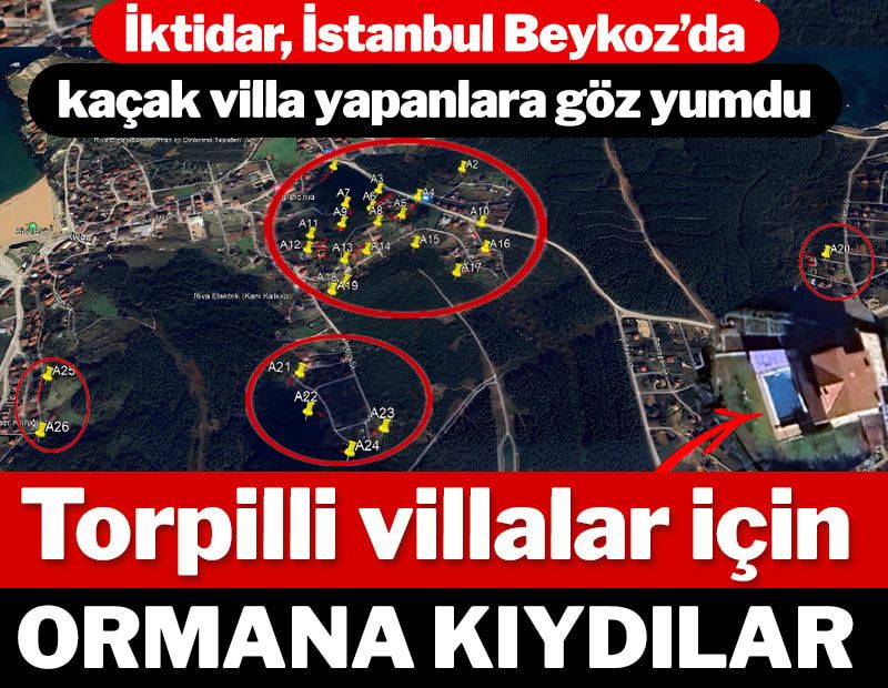İstanbul’un Beykoz ilçesindeki Kuzey Ormanlarına kaçak yapılmış havuzlu lüks villaların işgal ettiği 183 bin metrekarelik orman alanı, 28 Haziran tarihli Cumhurbaşkanı kararıyla orman vasfından çıkarıldı. İstanbul’un akciğerleri olarak nitelendirilen ormanlarda aynı zamanda içme suyu havzaları bulunuyor. Türkiye Ormancılar Derneği (TOD) orman vasfından çıkarılarak villa rantına açılan ormanların 26 lüks villa tarafından işgalini fotoğraflarıyla belgeledi. TOD Başkanı Hüsrev Özkara, “Villaları yıkıp ormandan çıkaracaklarına, ormanı ormandan çıkarıyorlar. Cumhurbaşkanı bu kararı bilerek imzalamış olamaz” dedi.