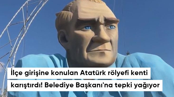 İlçe girişindeki Atatürk kabartması şehrin kafasını karıştırdı! Belediye Başkanına Tepkiler Yağdı