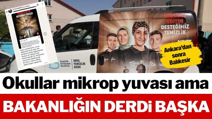 Başkan Akın’ın okullara temizlik desteği açıklamasının ardından Dursunbey İlçe Milli Eğitim Müdürlüğü, Whatsapp grubu üzerinden okul müdürlerine, Büyükşehir’in temizlik desteğinden yararlanmak için talepte bulunmamaları gerektiği talimatını verdi.
