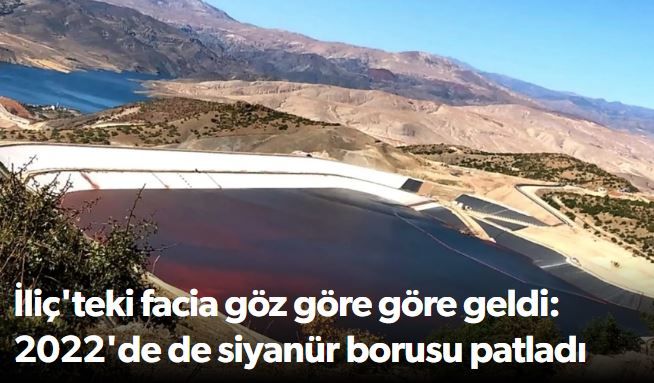 Haziran 2022'de de altın madeninde siyanür taşıyan boru patladı. Zehirli atıklar Fırat Nehri üzerindeki İliç Barajı'na karıştı.