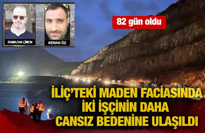 Erzincan’ın İliç ilçesindeki maden ocağında 13 Şubat’ta yaşanan toprak kaymasında, toprağın altında kalan iki işçinin daha cansız bedenine 82 gün sonra ulaşıldı. Bulunan cansız bedenlerin işçilerden Ramazan Çimen ve Kenan Öz’e ait olduğu bildirildi.
