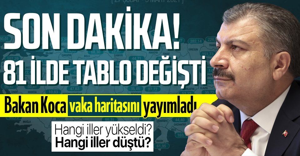 İllere göre haftalık vaka sayısının güncel haritasını Sağlık Bakanı Fahrettin Koca Twitter hesabından paylaştı.