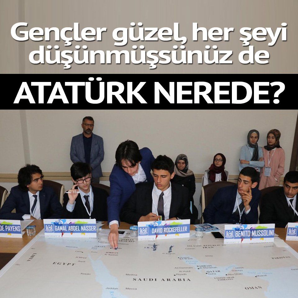Fatih Sultan Mehmet’ten, Abdülhamid’e, İzgetbegoviç’ten, ABD Başkanı Kennedy’e kadar 19 ismi temsile koyan gençler, Ulu Önder’i ise ‘unuttular.’
