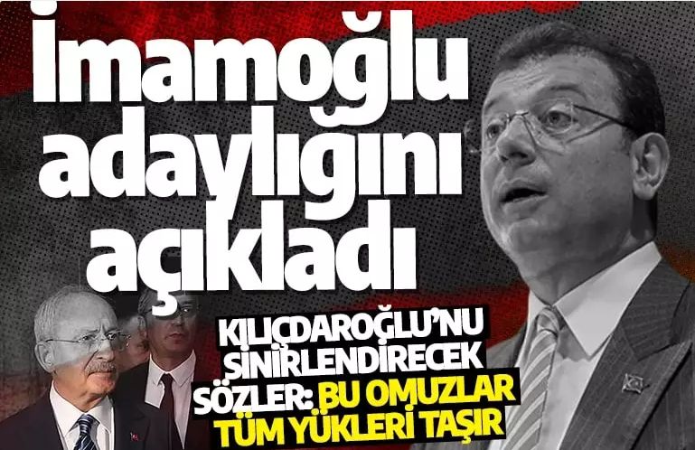 TV100'de katıldığı canlı yayında, kendisine yöneltilen "İBB Başkanı olarak iyiyim, başka bir göreve talip değilim mi diyorsunuz?" sorusuna yanıt veren Ekrem İmamoğlu, "Böyle bir şey denir mi ya? Bu omuzlar bütün yükleri taşır." ifadelerini kullandı.