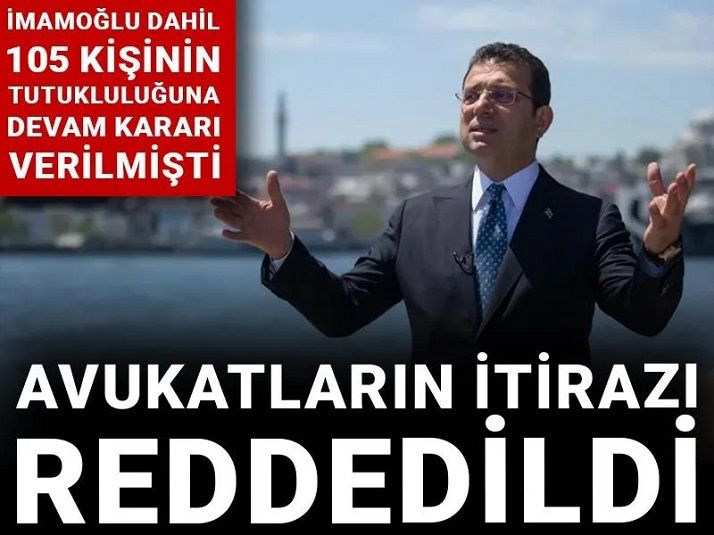 İstanbul Büyükşehir Belediyesi davasında aralarında Ekrem İmamoğlu’nun da bulunduğu 105 tutuklu kişi yargılanıyor. Avukatlar, tutukluluk kararlarına itiraz etti ancak İstanbul 41. Ağır Ceza Mahkemesi itirazları reddetti ve tüm tutukluların tutukluluk hallerinin devamına karar verdi.