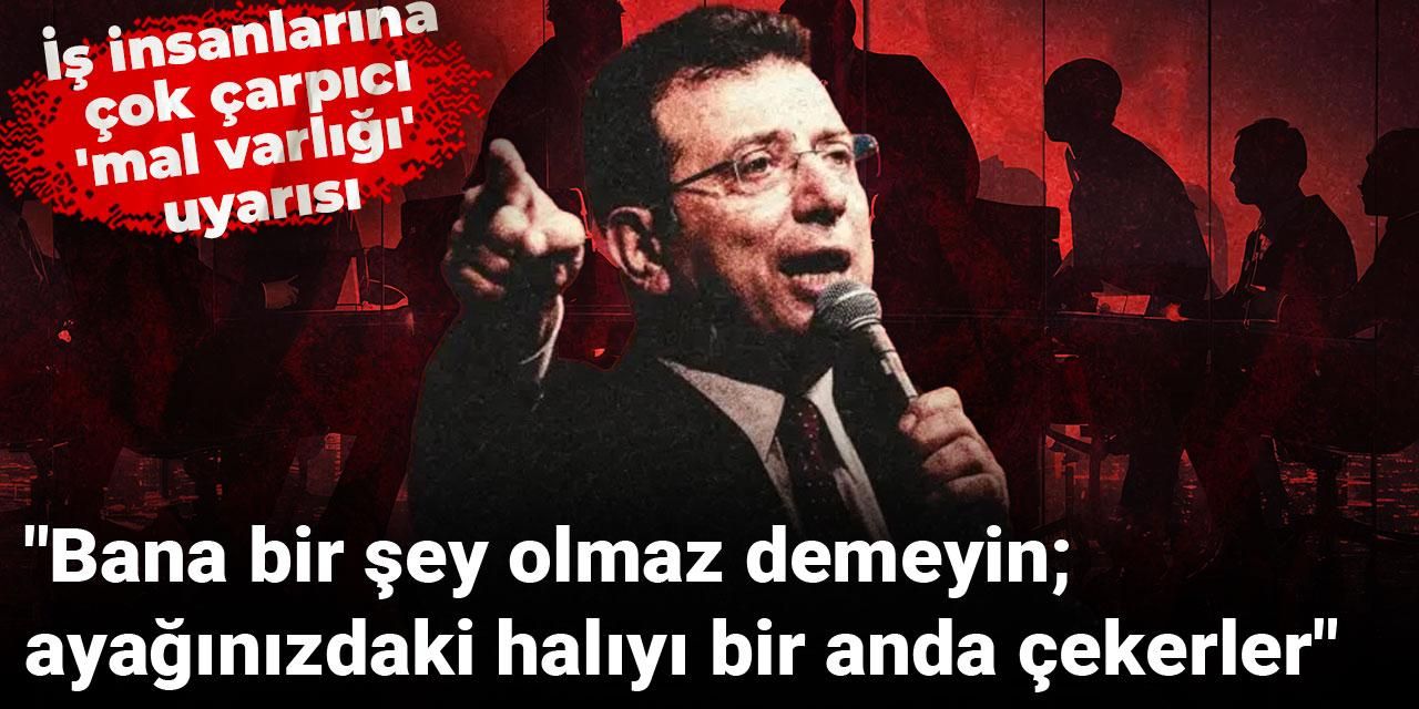 "Ama sizler de şunu çok iyi bilin: Bu ülkede hukuk, adalet ve demokrasi olmazsa bunların hiçbir garantisi kalmıyor" diyen İmamoğlu, "Kimse bana bir şey olmaz demesin. Olur, hem de hiç beklemediğiniz anda hiç beklemediğiniz şekilde olur. Bu hukuksuz akıl, ayağınızın altındaki halıyı bir anda çekiverir" dedi.