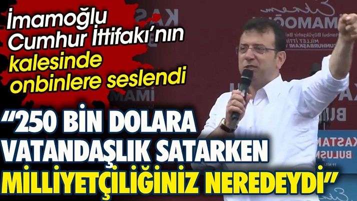 Son olarak İstanbul Büyükşehir Belediye (İBB) Başkanı Ekrem İmamoğlu, Kastamonu'da vatandaşlara seslendi. İktidarın sığınmacı politikalarını eleştiren İmamoğlu; "250 Bin dolara vatandaşlık satarken milliyetçiliğiniz neredeydi" dedi...