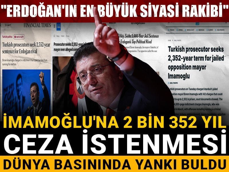 Almanya merkezli DW, "Ekrem İmamoğlu, toplamda 2 bin 353 yıl hapis cezasına çarptırılabileceği yaklaşık 150 suçlamayla karşı karşıya. Türkiye'nin en büyük şehrinin belediye başkanı, Cumhurbaşkanı Recep Tayyip Erdoğan'ın açık sözlü bir eleştirmeni" diye yazdı.