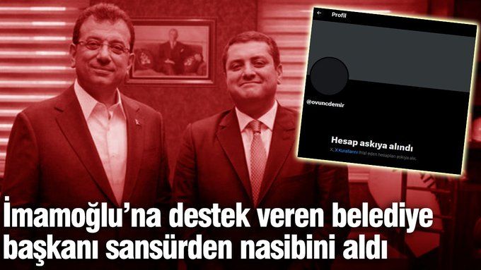 İstanbul Büyükşehir Belediye Başkanı Ekrem İmamoğlu’nun X hesabının erişime engellenmesi üzerine dayanışma göstermek amacıyla profil fotoğrafını İmamoğlu’nun fotoğrafıyla değiştiren İzmir Torbalı Belediye Başkanı Övünç Demir, kendi onaylı X hesabının askıya alındığını yazılı bir açıklamayla kamuoyuna bildirdi. Demir, açıklamasında şu ifadeleri kullandı: