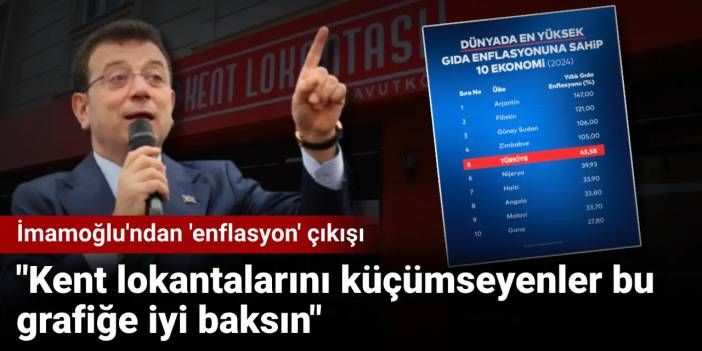 İmamoğlu paylaşımında, "Kent Lokantalarımızı küçümseyen akıllar bu grafiğe iyi baksın. Ne yazık ki dünya gıda enflasyonu listesinde 5. sıradayız. Çarşıya pazara uğramayanların bundan hiç haberi yok tabi. Kent Lokantalarımız bu derin yoksullukla mücadele için var. Milletin yanında olmaya devam edeceğiz" dedi.