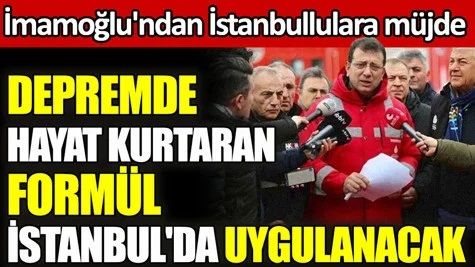 İmamoğlu ayrıca, şu anda yetersiz olan karbon elyaf üretim ve uygulama kapasitesini de ilk etapta beş katına çıkarılacağını belirterek "Vakit kaybetmeden bütün riskli binaları depreme dayanıklı hale getireceğiz. Bir yandan kentsel dönüşüm projelerimizi devreye sokacağız" dedi. İstanbul Büyükşehir Belediye Başkanı, yeni projenin hafta sonu İstanbullulara açıklanacağını da sözlerine ekledi.