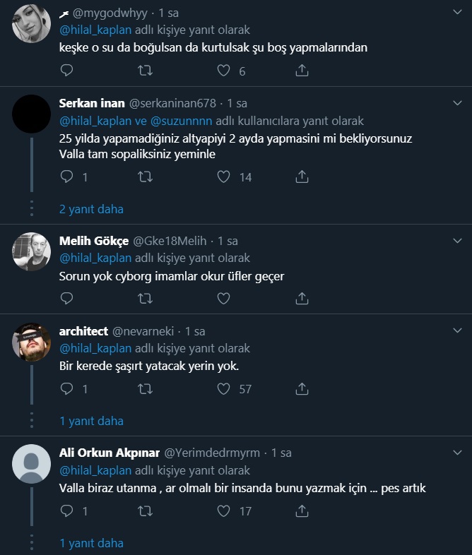 Paylaşımında "İstanbul’da bir kişi hayatını kaybetti, dükkanları evleri bakımı yapılmayan mazgallardan taşan su bastı. İstanbul’un seçtiği başkan hâlâ izinde, gezmelerde.. Selle de kucaklaşarak mı mücadele edeceğiz?" diyen Kaplan, kullanıcıların "17 yıldır İmamoğlu mu İstanbul'u yönetiyordu?" sorusuyla karşı karşıya kaldı. İşte o paylaşım ve yorumlar: