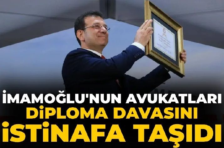 Diploma iptalinin iptali için açılan davanın kabul edilmesi ve yürütmenin durdurulması için İmamoğlu'nun avukatları tarafından istinafa başvuruldu.