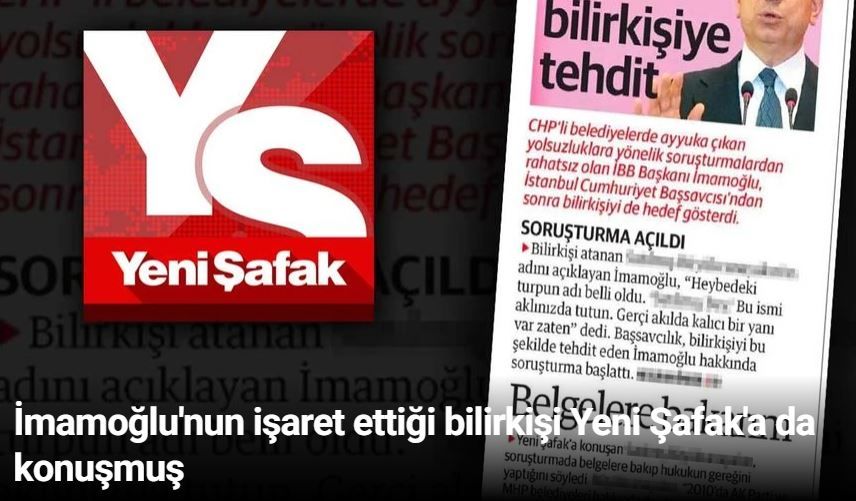 İktidara yakınlığı ile bilinen Yeni Şafak gazetesinin de İmamoğlu’nun basın toplantısının ardından bilirkişi ile röportaj yaptığı ortaya çıktı.