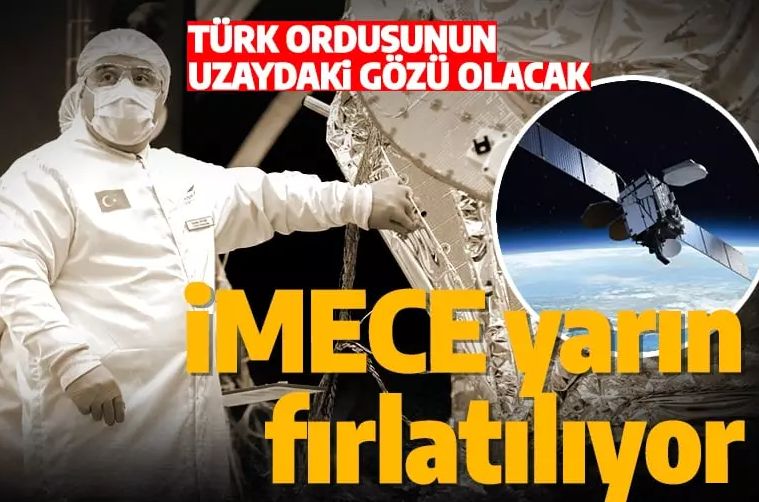 Cumhurbaşkanı Recep Tayyip Erdoğan'ın başlattığı Milli teknoloji hamlesi meyvelerini veriyor. TÜBİTAK Uzay Teknolojileri Araştırma Enstitüsü tarafından yerli ve milli imkanlarla geliştirilen ve metre altı çözünürlükle dünyanın her yerinde görüntü çekme kabiliyetine sahip İMECE uydusu yarın uzaya fırlatılacak.