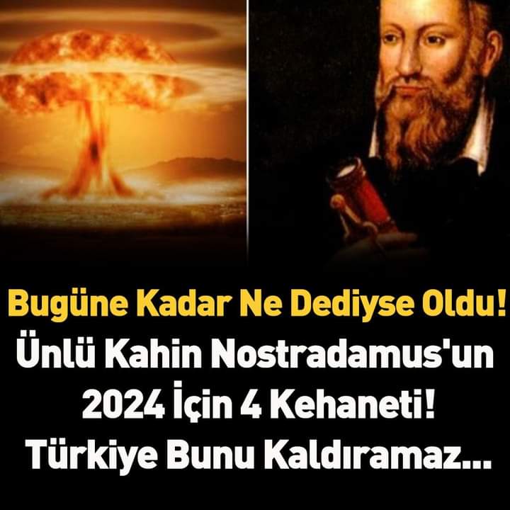 Bugüne kadar tahminleri hep tutan kahin Nostradamus'un 2024 tahminleri son günlerde en çok konuşulan konu oldu. İşte ünlü kahinin ülkemiz ve dünya için tahminleri.