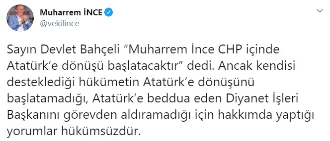 CHP’den ayrılıp parti kuracağı söylenen Muharrem İnce açıklama yapmış ve 4 Eylül’de Sivas’ta harekete başlayacağını duyurmuştu. Bahçeli ise İnce’nin açıklamaları üzerine, "4 Eylül’de, Sivas Kongresi’nin ruhuyla atacağı adımla CHP içinde Atatürk'e dönüş hareketini başlatacaktır” yorumunu yapmıştı.