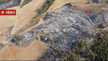 Çanakkale’nin Gelibolu ilçesinde yanan alanlar dronla görüntülendi