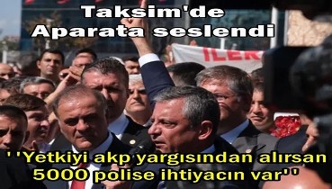Ö. Özel, Taksim'de aparata seslendi: ''Yetkiyi akp yargısından alırsan 5 bin polise ihtiyacın var, milletten alırsan 5 bin partili karşılar.''