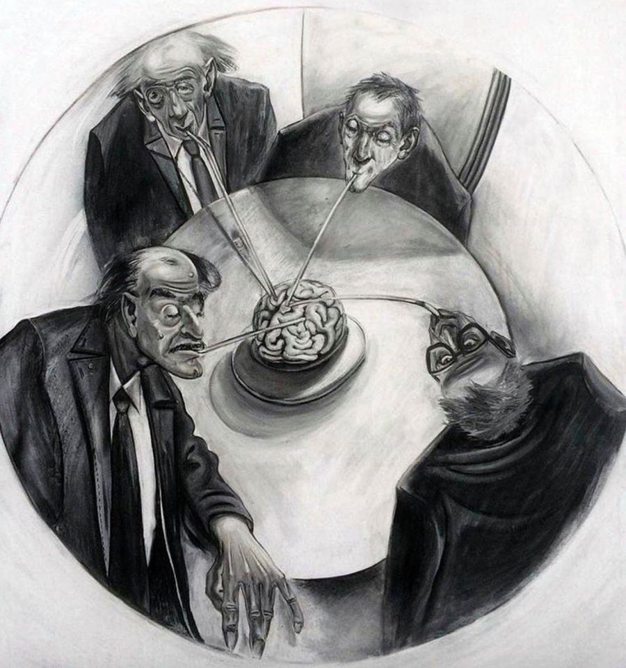 Kafası bin tane intikam hissi ile karışmış, midesi “hep onlar yedi biraz de ben yiyeyim” histerisi ile kıvranan, ruhu meyhane masasında yapayalnız kalmış “aydından” ne beklersin ki? Küçük hesapları yüzünden kendi kendini iğdiş etmiş, ihtirasları ile aklı dumura uğramış bir kitle... Parolası işkembecilik, işareti sorumsuzluk...
