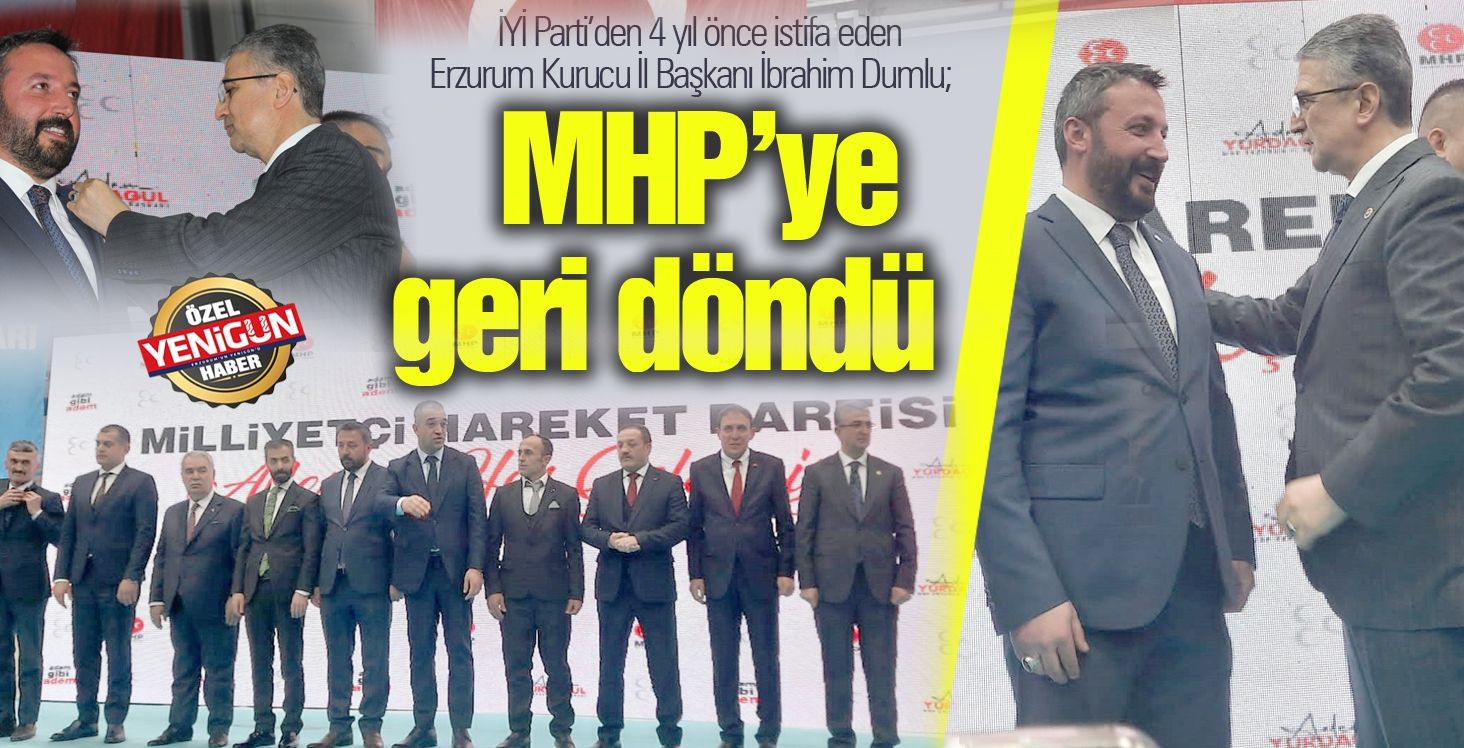İYİ Parti’nin Erzurum’daki Kurucu İl Başkanı olan İbrahim Dumlu, yuvaya resmen geri döndü. Beraberindeki 300 kişi ile birlikte MHP saflarına resmen katılan İbrahim Dumlu, 2019 yılında istifa etmiş ve istifasının hemen ardından siyaseten tüm desteğini Cumhur İttifakına vereeğini açıklamıştı. Dumlu’nun MHP’ye dönüş rozetini ise, Genel Başkan Yardımcısı Prof. Dr. Kamil Aydın taktı. Recep Tayyip Erdoğan Fuar ve Kongre Merkezi’ndeki aday tanıtım toplantısında gerçekleştirilen katılım, Ülkücü camiada büyük memnuniyet uyandırdı.