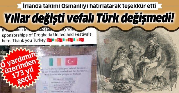 İrlanda'nın Drogheda United futbol takımı Türkiye'nin gönderdiği, yeni tip koronavirüs (Kovid19) salgınıyla mücadelede kullanılan koruyucu ekipmanlar için Osmanlının 173 yıl önce kıtlık zamanında ülkeye yaptığı yardımı hatırlatarak teşekkür etti.