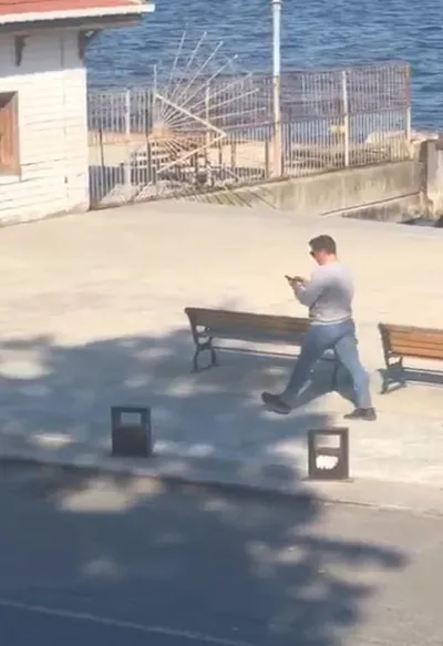 İsmail Küçükkaya öğleden sonra Emirgan İskelesi önünde Sarıyer istikametine yürüyüş yaparken vatandaşlar tarafından görüntülendi.