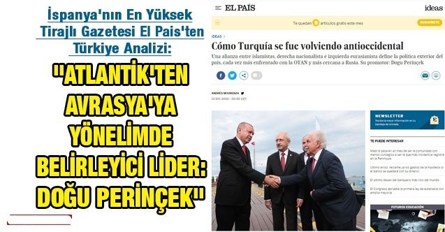 İspanya'nın en yüksek tirajına sahip El Pais gazetesinde, 13 Aralık 2020 günü, ''Türkiye nasıl Batı karşıtı oldu'' başlıklı bir makale yayımlandı. Makalede, Atlantik'ten uzaklaşan Türkiye'nin, iç ve dış siyasetinde Vatan Partisi Genel Başkanı Doğu Perinçek'in strateji ve siyasetlerinin etkili olduğu vurgulandı.