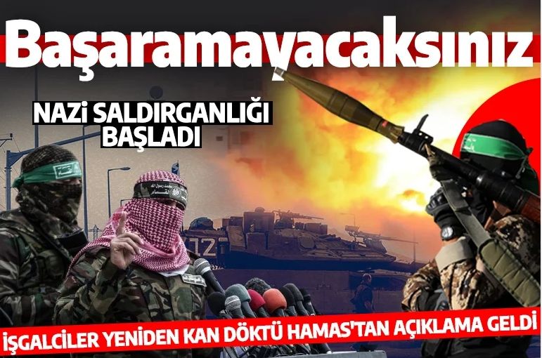 Hamas'ın Telegram hesabından paylaşılan açıklamada şu ifadelere yer verildi; "Halkımızın kararlılığı ve direnişimizin kahramanlığıyla, düşmanın suçlarına, Nazi saldırganlığının yeniden başlamasına ve sivilleri hedef almasına karşı koyuyoruz."