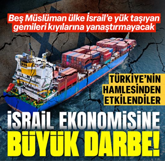 Filistin’de soykırım yapan İsrail’i tedirgin eden Türkiye yaptırımlarını örnek alan birçok Müslüman ülke, benzer adımları atmaya hazırlanıyor. 5 Müslüman ülkenin İsrail Limanları’na uğrayıp yük alan veya İsrail limanlarına yük taşıyan gemileri kıyılarına yanaştırmama kararı almayı konuştuğu ifade edildi.