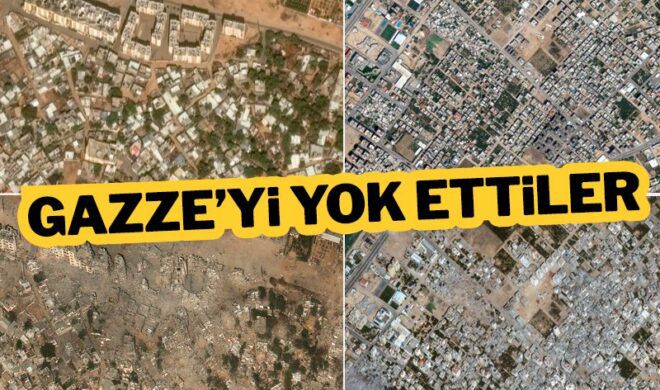 Orta Doğu’da sular durulmuyor… Hamas’ın 7 Ekim’de gerçekleştirdiği saldırı sonrasında Gazze’de sivilleri hedef alan İsrail’in saldırılarının yarattığı yıkım uydudan gözler önüne serildi…