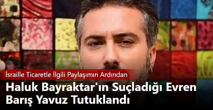 İsraille ticarete ilişkin paylaşımda bulunan siyasal iletişimci Evren Barış Yavuz, sabah saatlerinde evinden alınarak emniyete götürüldü. Yavuz hakkında "Halkı kin ve düşmanlığa tahrik veya aşağılama" suçlamasıyla soruşturma açılmıştı.