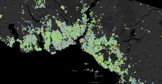 Hayat Eve Sığar uygulamasında İstanbul'da yaşanan vaka yoğunlukları şöyle: