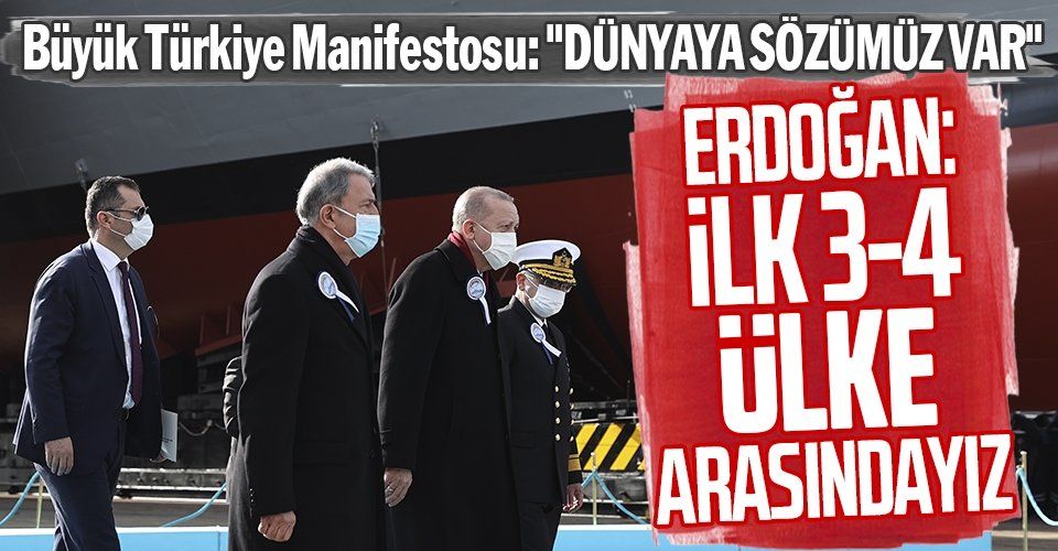 Savunma sanayisinde sadece geçmişin eksiklerini gidermekle kalmıyoruz, aynı zamanda geleceğe de hazırlanıyoruz. İnşallah 5 yılda hizmete alacağımız 5 büyük proje ile donanmamızı çok güçlü bir konuma getireceğiz. Denizaltı teknolojisinde önemli kabiliyetler edindiğimiz yeni tip 6 denizaltımızı 2022 yılında Piri Reis'ten başlayarak her yıl birer tane olmak üzere hizmete alacağız. Korkut alçak irtifa hava savunma sisteminin deniz versiyonu olan Gökdeniz'i ilk kez İstanbul Fırkateyni'yle birlikte envantere alacağız. Anadolu Gemimizden sonra yerli ve milli olarak planlayacağımız uçak gemimiz bizi bu alanda en üst lige taşıyacaktır.