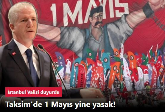İstanbul Valiliği, Taksim için 1 Mayıs gününe toplantı ve yürüyüş yasağı koyuyor, metroda Taksim ve Şişhane duraklarını kapatıyor, İstiklal Caddesi'ne girişleri yasaklıyor.
