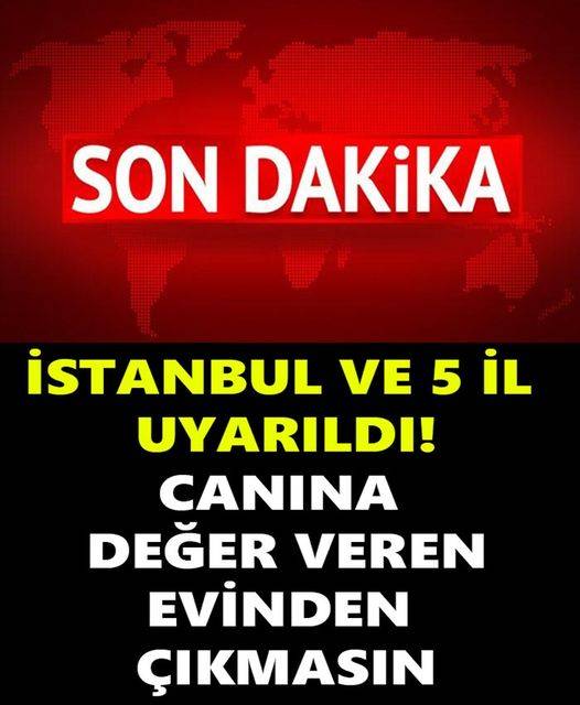 İstanbul ve 5 İl Uyarıldı Canına Değer Veren Evinden Çıkmasın.. Görsele Do-ku-nunuz..