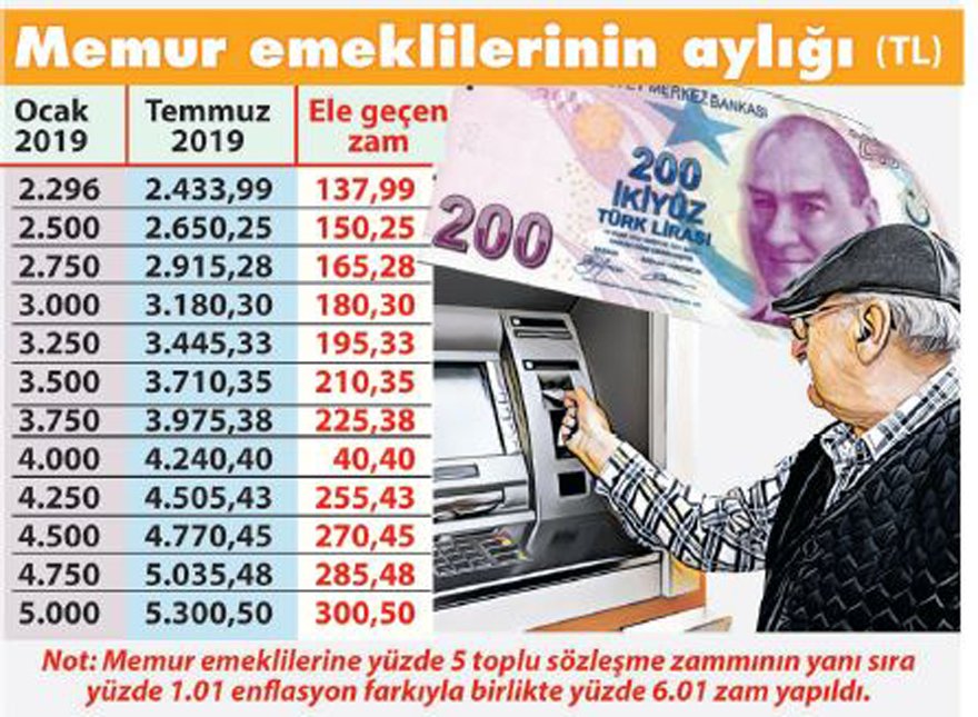 Sözcü gazetesinden Erdoğan Süzer'in haberine göre seçimlerden hemen sonra elektriğe, akaryakıta, çaya ve şekere yüzde 16'lara varan oranlarda zam yapılmasına rağmen haziran ayı enflasyonu aşırı düşük çıkınca memur ve memur emeklilerinin payına yüzde 6, diğer emeklilerin payına ise sadece yüzde 5 zam çıktı. Emekli büyük zamlarla daha da pahalanan hayatını 56 liralık maaş artışıyla karşılamaya çalışacak.