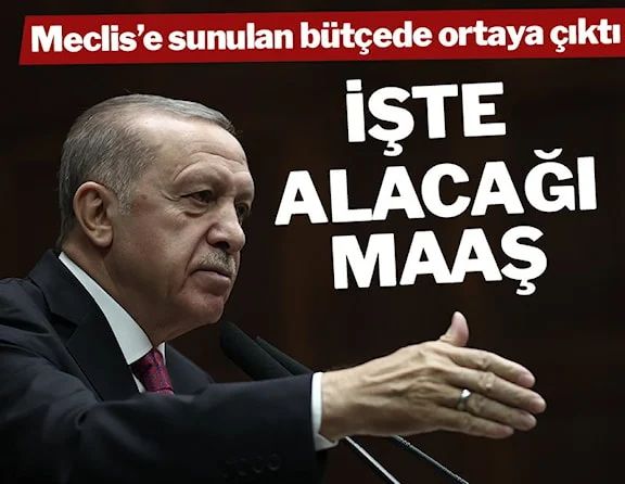 Bütçe teklifinde; Cumhurbaşkanı'nın maaşının bulunduğu “Cumhurbaşkanı ödeneğine” ise 1 milyon 209 bin TL ayrıldı. Ancak ödeneğin 2022 yılı başlangıç ödeneği de 1 milyon 209 bin TL olarak belirlenmişti. Yani Cumhurbaşkanı Recep Tayyip Erdoğan'ın 100 bin 750 lira olan aylık maaşı, bu yıl artmadı.
