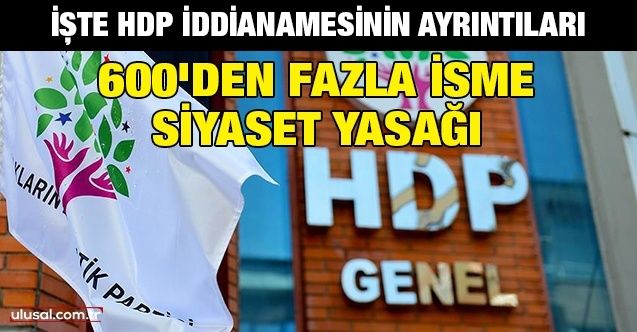 İddianamede, 600'den fazla HDP'li hakkında siyaset yasağı isteniyor.