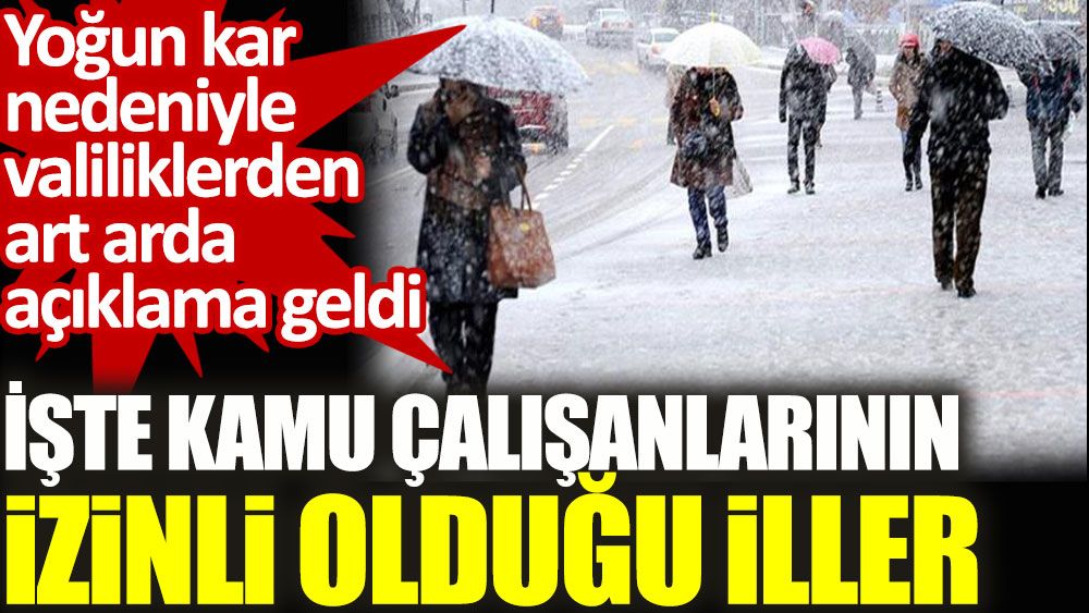 "İlimizde devam eden yoğun kar yağışı nedeniyle kamu kurum ve kuruluşlarında görev yapan hamile ve engelli personellerin 24 Ocak Pazartesi ve 25 Ocak Salı günü iki gün idari izinli sayılmaları uygun görülmüştür. Ayrıca, 2425 Ocak'ta kamu kurum ve kuruluşlarında yapılan iş ve işlemlerin kesintisiz devamının sağlanarak, vatandaşların mağduriyetine sebebiyet vermeyecek şekilde asgari personel çalıştırılması ve esnek çalışma saatlerinin uygulanmasına karar verilmiştir."