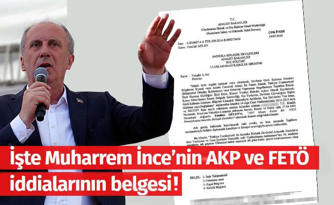 Adalet Bakanlığı'ndan, CHP heyetinin incelemelerinden önce kamuoyuna sızan iade belgeleri de İnce'nin iddialarını doğrular nitelikte. Buna göre Gülen hakkında İstanbul 14. Ağır Ceza Mahkemesi'nin aldığı “yakalama kararının” tarihi 10 Kasım 2015. Oysa, Gülen'in ABD'deki adresinin biliniyor olmasına rağmen ABD'ye FETÖ elebaşının gözaltına alınması ve iadesine ilişkin talep yazısı ancak 8 ay sonra, yani 19 Temmuz 2016 tarihinde gönderilmiş durumda. ABD'ye Gülen'in iade edilmek üzere gözaltına alınmasına ilişkin dosya ancak 15 darbe girişiminden sonra gönderilmiş.