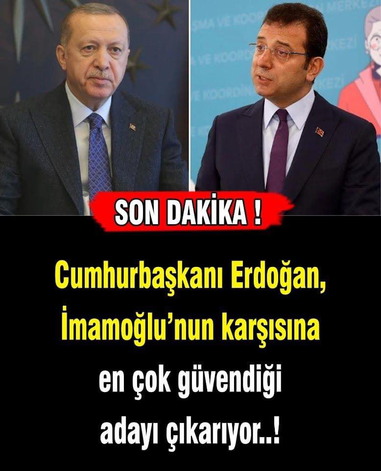 Değişim fitilini ateşlediler..Erdoğan, İmamoğlu’nun karşısına en çok güvendiği adayı çıkarıyor…İstanbul Büyükşehir Belediye Başkanı Ekrem İmamoğlu, dün Ankara’da gerçekleşen basın toplantısıyla gelecek yıl yapılacak olan yerel seçimlerde İstanbul için yeniden aday olacağını duyurdu.