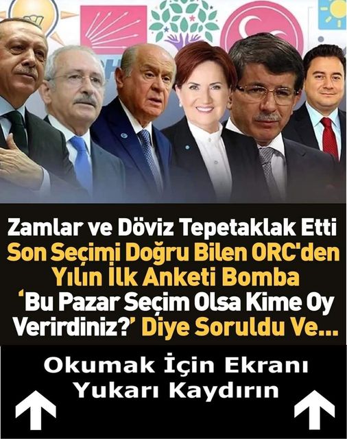 2018 seçim sonuçlarını en doğru tahin eden anket şirketi ORC’den yılın ilk anketi geldi. Anket sonuçlarına göre yılın son anketindeki 20 Aralık etkisiyle kıpırdanma yaşanan oy oranlarında zamların da etkisiyle düşüş var. 2021 yılına başlangıç oy oranları kıyaslandığında ekonomik problemlerin yansıması dikkat çekti. Detaylar için fotoğrafa tı*klayıp diğer sayfaya geçiniz