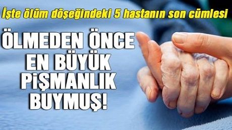 Ölmeden önceki 5 pişmanlık! Ölümcül hastalara acı çekmemeleri için yatıştırıcı ve rahatlatıcı tedavi uygulayan hemşire Bronnie Ware, 'Ölmeden Önceki Beş Pişmanlık' adlı bir kitap yazdı.
