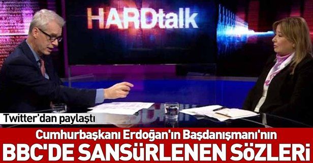 BBC'nin HARDTalk programına konuk olan Cumhurbaşkanı Erdoğan'ın Başdanışmanı Prof. Dr. Gülnur Aybet, Stephen Sackur'ın sorularını yanıtladı. Programdaki açıklamaları sansürlenen Prof. Aybet, yayınlanmayan o bölümleri Twitter hesabından paylaştı..Sackur'un Türkiye'de gazetecilerin 'gazetecilik faaliyetleri' kapsamında tutuklandığını söylemesi üzerine, bunun doğru olmadığını belirten Aybet, "İngiltere'nin de 'terörü övmek' suçunu 7 yıla kadar hapisle cezalandırdığını" hatırlattı.