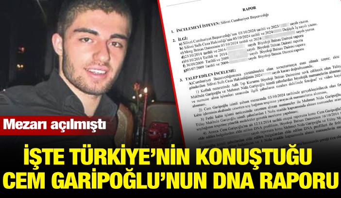 Münevver Karabulut'un katili Cem Garipoğlu'nun açılan mezarından alınan kemik örnekleri üzerindeki Adli Tıp incelemesi tamamlandı. Silivri Cumhuriyet Başsavcılığı, mezardaki kemiklerden alınan DNA'nın Cem Garipoğlu'nun anne ve babasıyla doğrudan uyumlu olduğunu açıkladı.