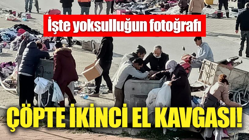 Çanakkale’de çöp konteynerlerine atılan çöpler içerisinden kendileri ve çocukları için elbise toplayan vatandaşların görüntüleri kameralara yansıdı.